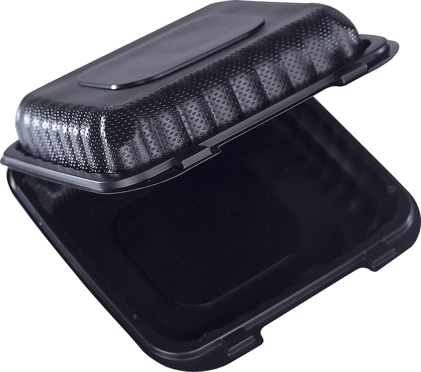 Bandeja negra 8×8 sin divisiones, elaborada en material resistente al calor y apta para microondas. Su diseño elegante y moderno realza la presentación de comidas calientes, carnes a la parrilla y platos principales. Ideal para restaurantes, buffets, delivery y negocios que buscan destacar con una imagen profesional.
