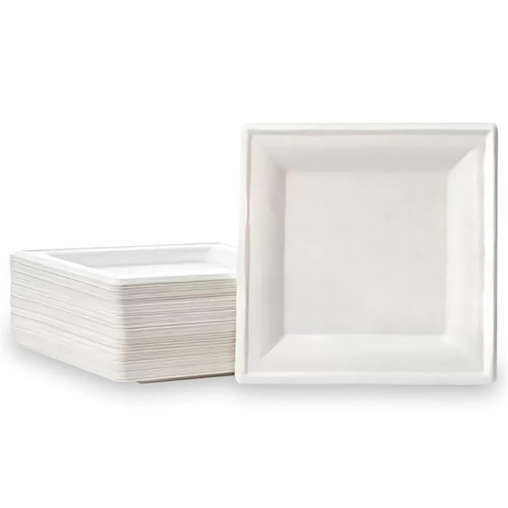 Plato cuadrado de 8 pulgadas fabricado con bagazo de caña de azúcar Biodegradable, compostable y respetuoso con el medio ambiente Resistente a comidas calientes, frías y con salsas Diseño elegante y funcional para servicio de alimentos Ideal para restaurantes, catering, buffets y eventos ecológicos